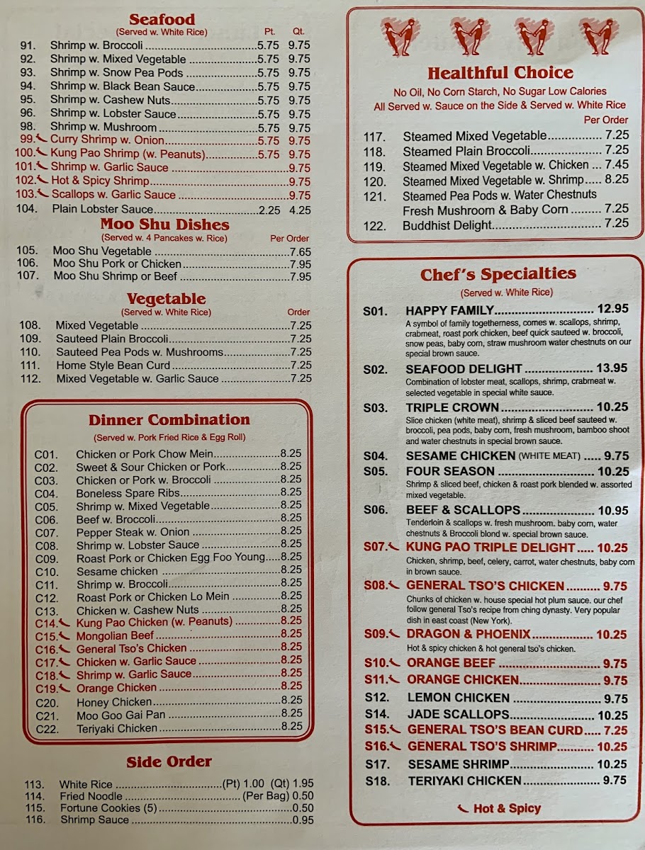 The lunch specials are particularly delightful, featuring favorites such as Chicken or Pork Chow Mein and Beef or Shrimp Lo Mein, each priced at just $7.75. For those craving heartier options, the generous portions of Egg Foo Young and W. Broccoli stand out, showcasing fresh ingredients and robust flavors.